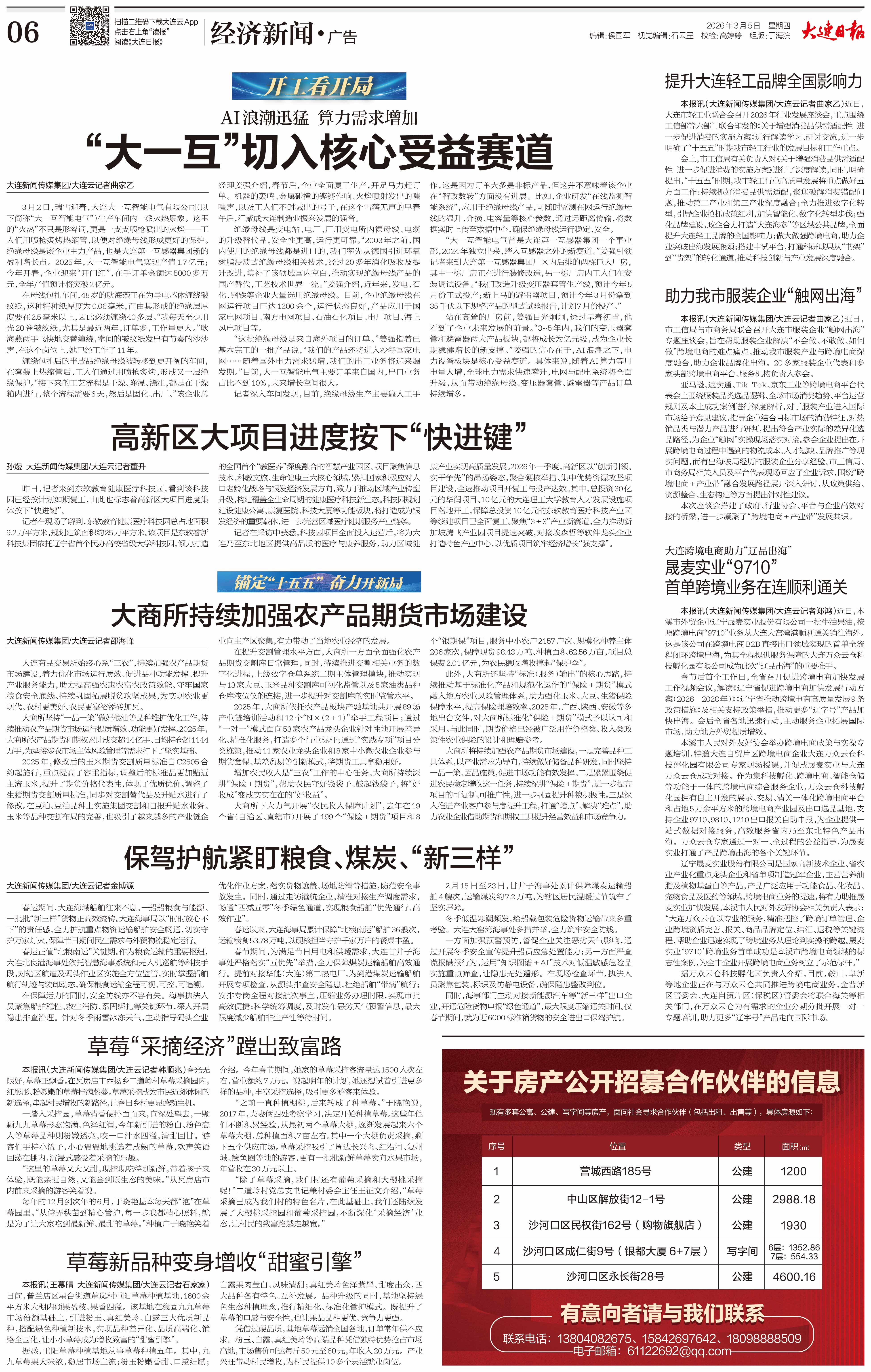紧扣“十五五”现代化产业体系建设要求,大连重大项目全面提速,这些覆盖交通枢纽、高端制造、石化产业链、循环经济的工程,串起大连乃至辽宁中长期发展的“产业拼图”,为区域经济高质量发展注入持久动力。在电力装备领域,全球最大互感器制造商大一互,总投资1.5亿元的…